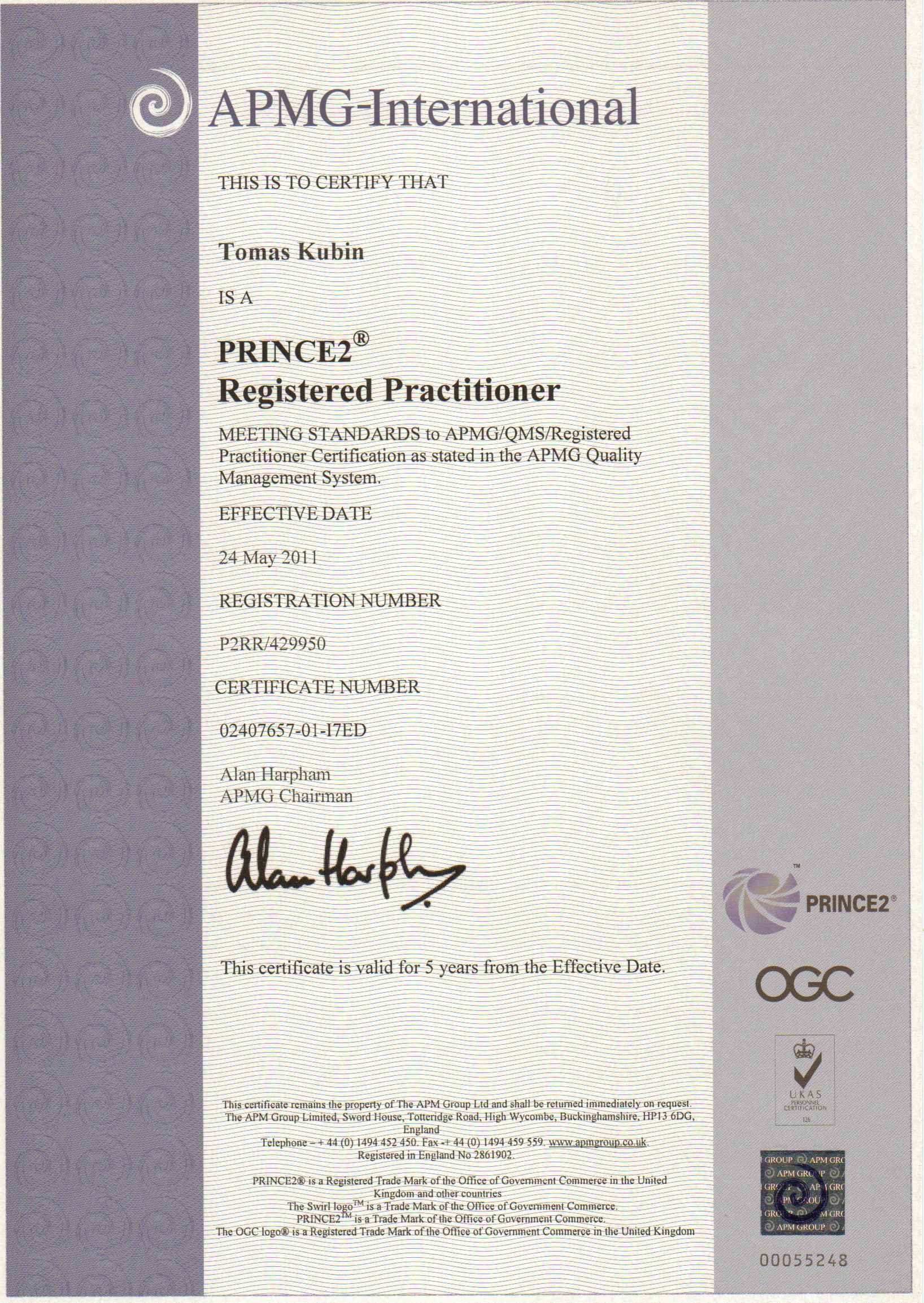 - PRINCE2 Practitioner, Re-Registered (APMG, P2RR/429950)